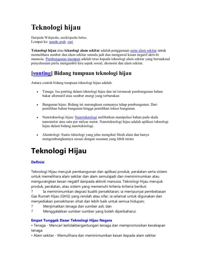 Teknologi Hijau Melestarikan Alam Sekitar Pdf